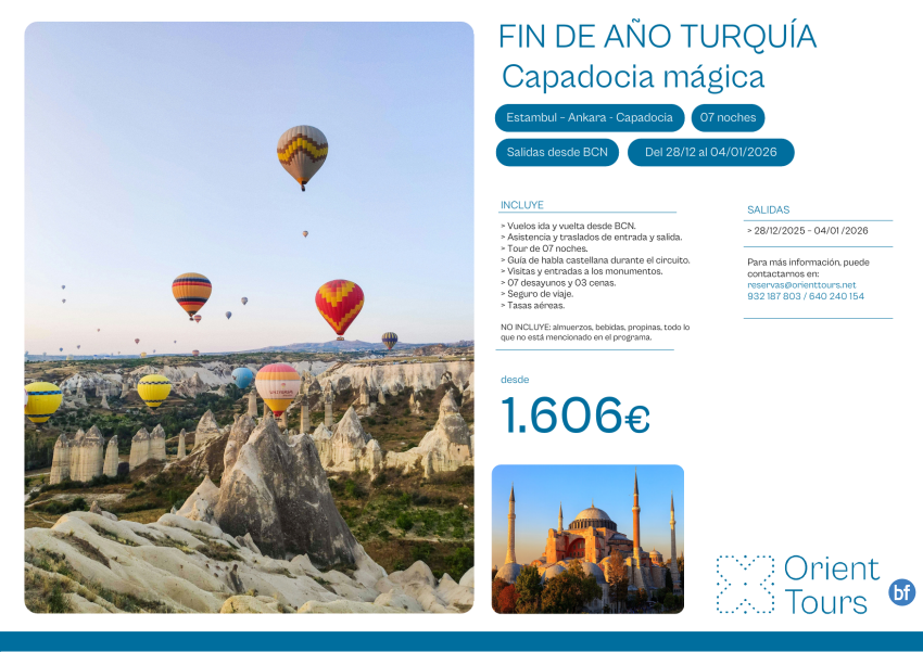 Turquía Fin de Año 07 noches salida 28/12 con vuelos desde Bcn